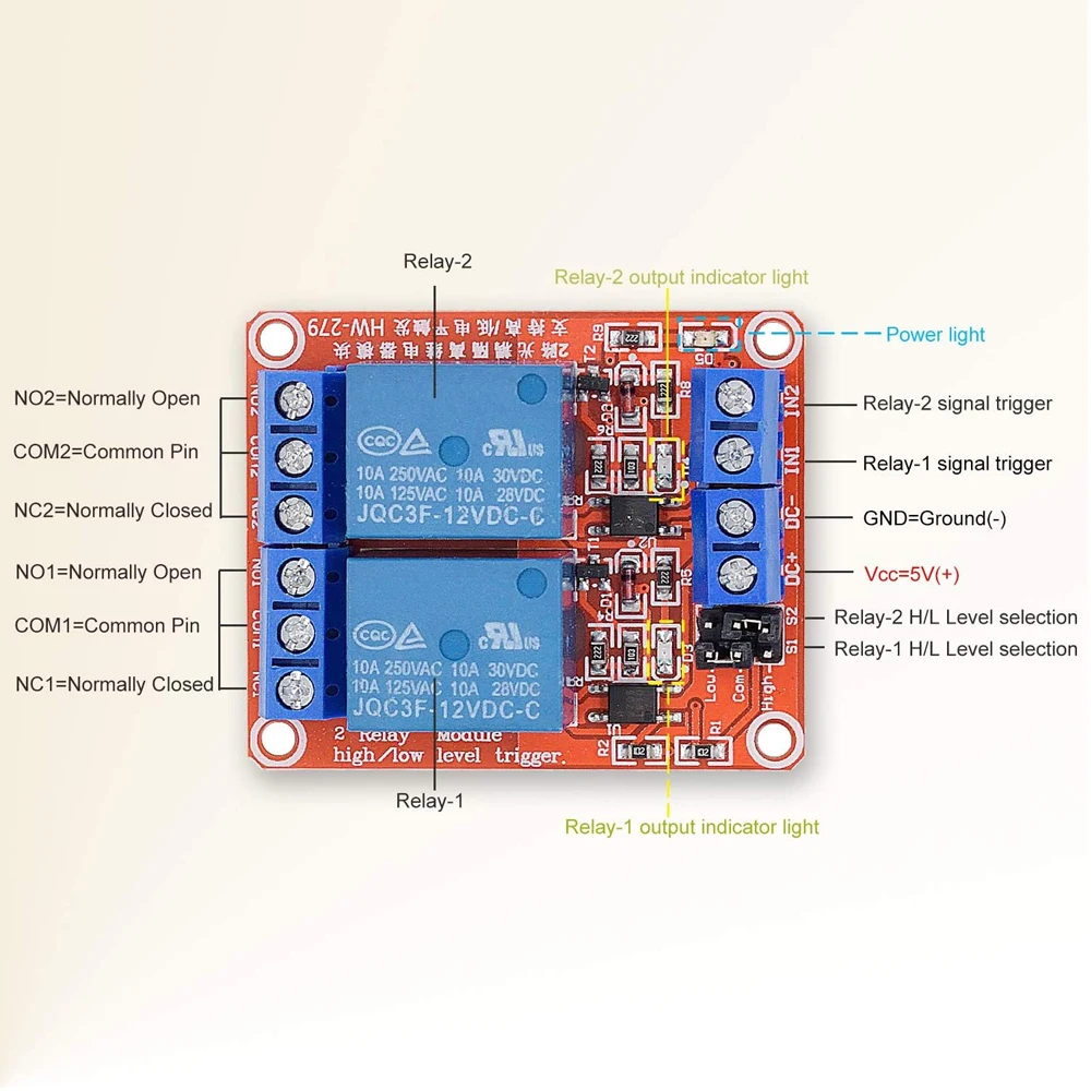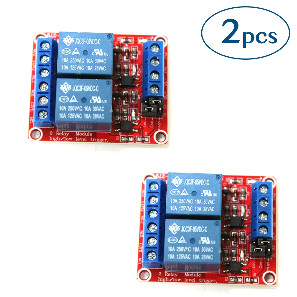 2個セット 高/低レベルトリガー 2チャンネルリレー スイッチ オプトカップラー絶縁 DC 5V リレーモジュール 電子部品
