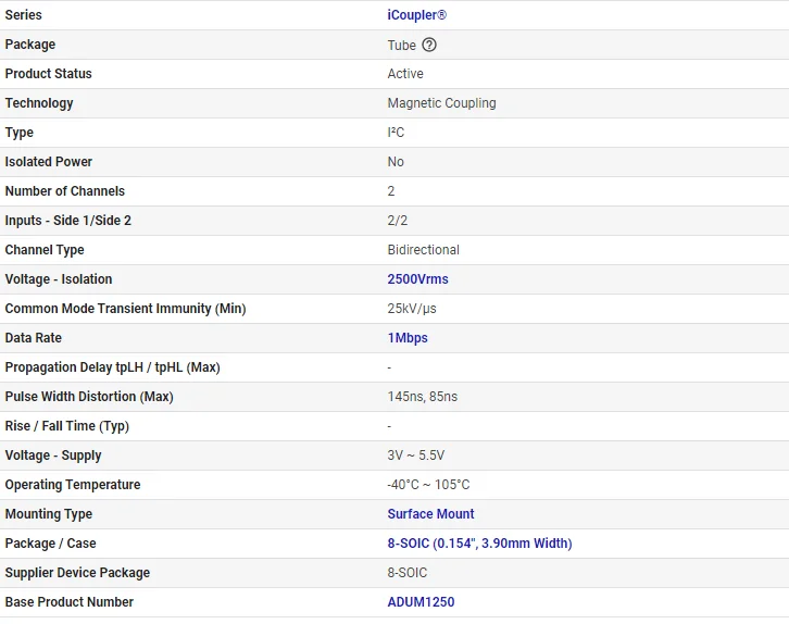 Digital Isolator ADUM1250ARZ ADUM1250 SOP-8 for Industrial Communication and Motor Control